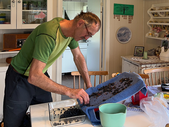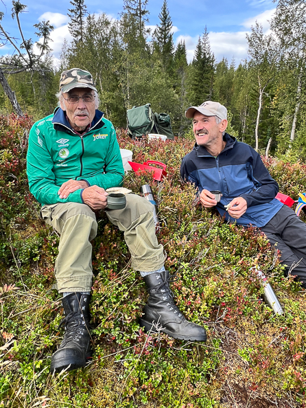 Jeg plukket litt bær nedover mot "Grånøm" og traff på denne gjengen. Det var skikkelig trivelig og vi fikk historier knyttet til Helges gode gamle ryggsekk.