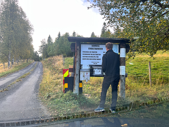 Oppslagstavle med informasjon om Soknedal søndre statsalmenning ved parkeringsplassen.