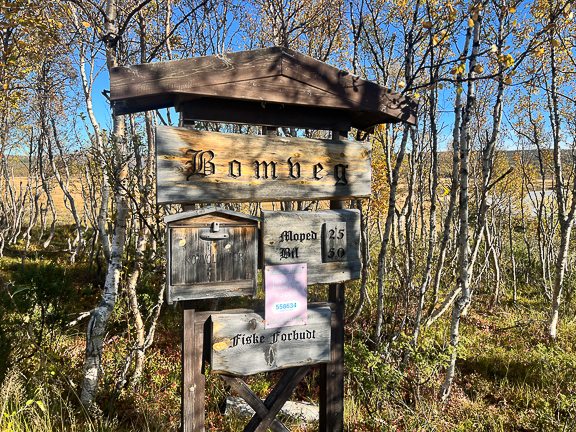 Da jeg gikk innover møtte jeg en jeger på en ATV. Lenger inne lå det en veske i veien og jeg er ganske sikker på at det var han som mistet den. Den lå der også når jeg kom tilbake så jeg tok den med til bommen.