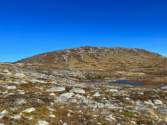 Det var litt småkupert, litt stein og vanndammer. Men fjellet vokste etterhvert som jeg nærmet meg.