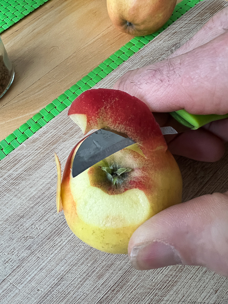Neste formiddag ble jeg satt til å skrelle og dele epler i skiver.