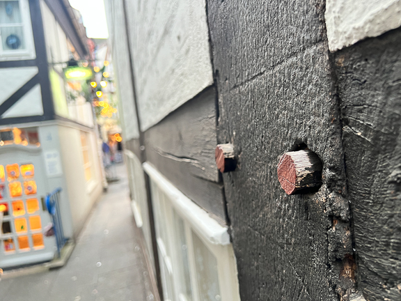 De små husene var bygd av 5"s bokser som var tappet sammen og låst med treplugger. God gammel byggeskikk. Sikkert fra 14-15-hundretallet dette.
